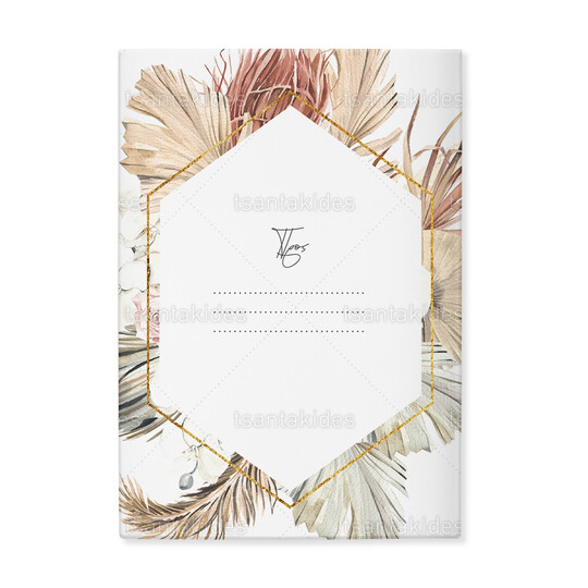 Προσκλητήριο σκληρό καπάκι μεγάλο εκτυπωμένο με τα pampas σε γήινες αποχρώσεις