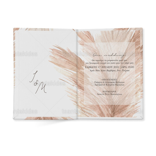 Προσκλητήριο σκληρό καπάκι  μεγάλο εκτυπωμένο με pampas