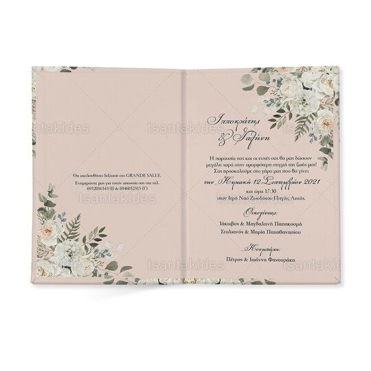Προσκλητήριο σκληρό καπάκι μεγάλο εκτυπωμένο με floral σχεδιασμό από τριαντάφυλλα και ορχιδέες