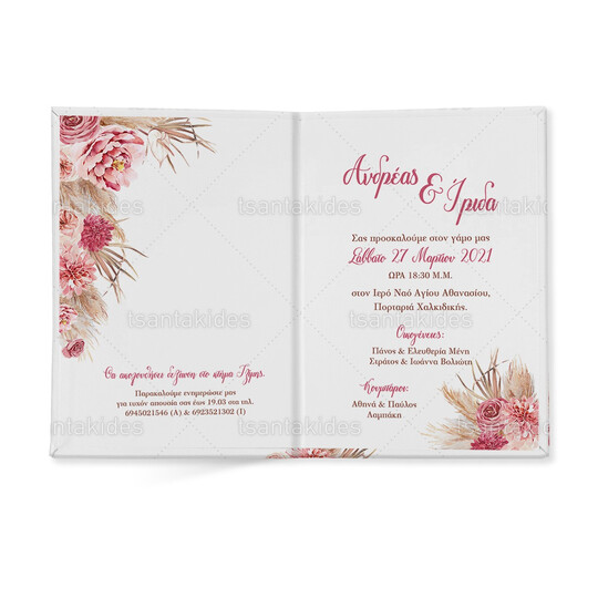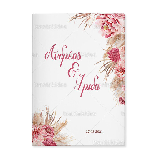 Προσκλητήριο σκληρό καπάκι μεγάλο εκτυπωμένο με dried flowers and pampas