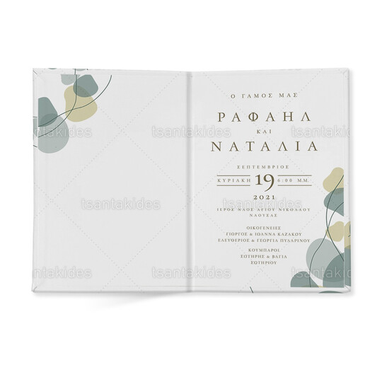 Προσκλητήριο σκληρό καπάκι  μεγάλο εκτυπωμένο με minimal σχεδιασμό και sage green στοιχεία