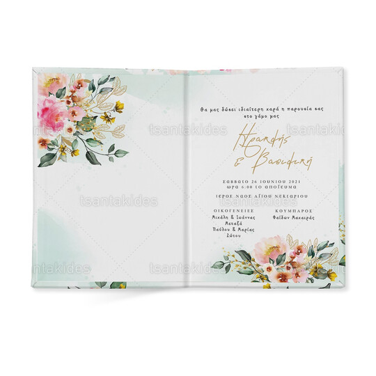 Προσκλητήριο σκληρό καπάκι μεγάλο εκτυπωμένο με pink floral σχεδιασμό
