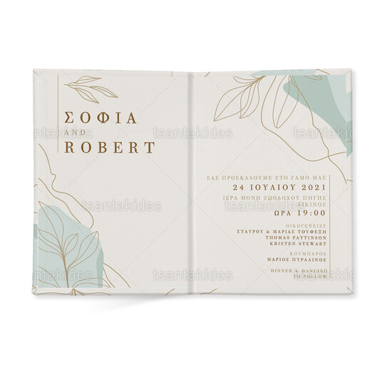 Προσκλητήριο σκληρό καπάκι μεγάλο εκτυπωμένο με minimal γραμμικό σχεδιασμό και dusty χρωματισμούς