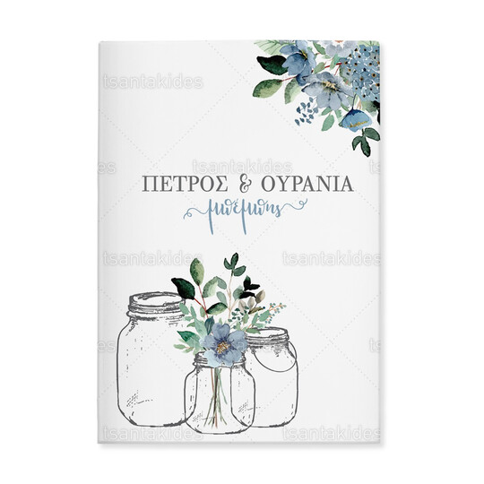 Προσκλητήριο σκληρό καπάκι μεγάλο εκτυπωμένο με λουλούδια σε βαζάκια