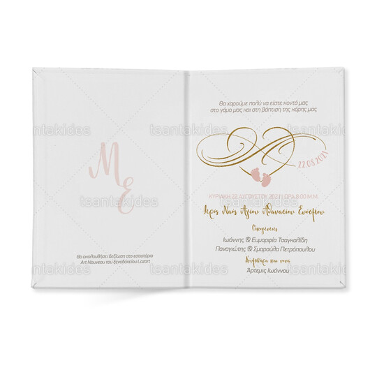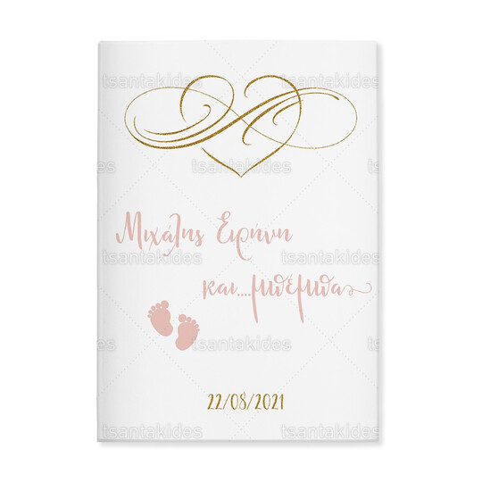 Προσκλητήριο σκληρό καπάκι μεγάλο εκτυπωμένο με το σύμβολο του άπειρου και τα bebe πατουσάκια