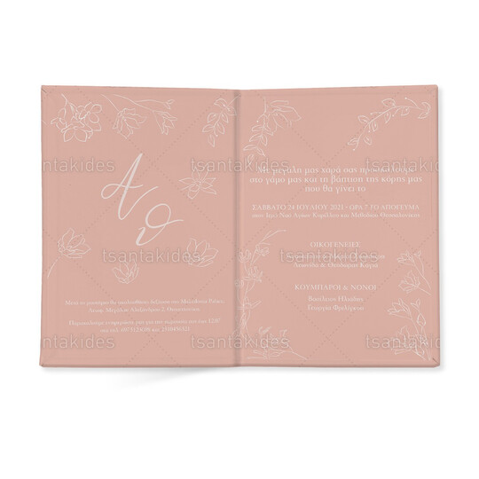 Προσκλητήριο σκληρό καπάκι μεγάλο εκτυπωμένο με γραμμικά λουλούδια σε σάπιο μήλο background