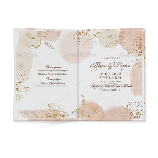 Προσκλητήριο σκληρό καπάκι μεγάλο εκτυπωμένο με θέμα Gold Abstract Flowers