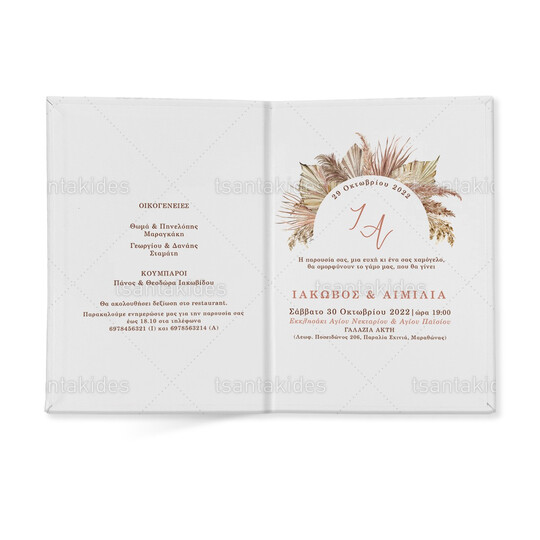 Προσκλητήριο σκληρό καπάκι μεγάλο εκτυπωμένο με θέμα Boho Arch