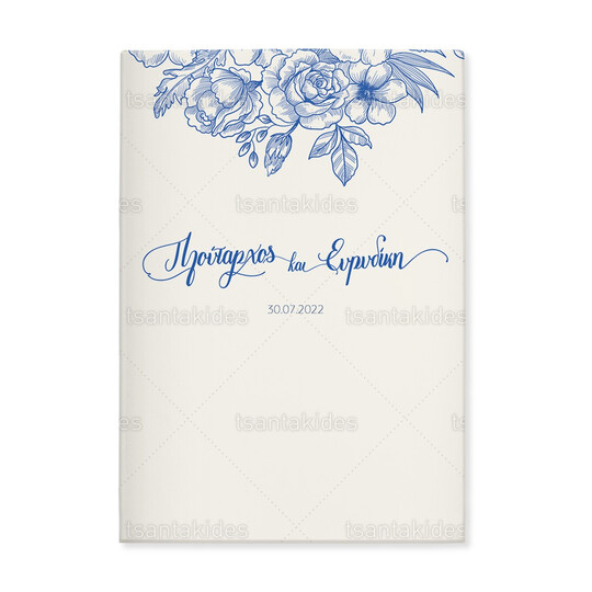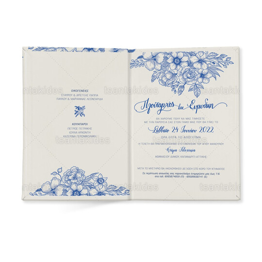 Προσκλητήριο σκληρό καπάκι μεγάλο εκτυπωμένο με θέμα Blue Porcelain