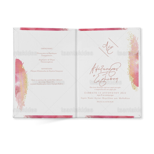 Προσκλητήριο σκληρό καπάκι μεγάλο εκτυπωμένο με θέμα Pink Brushes