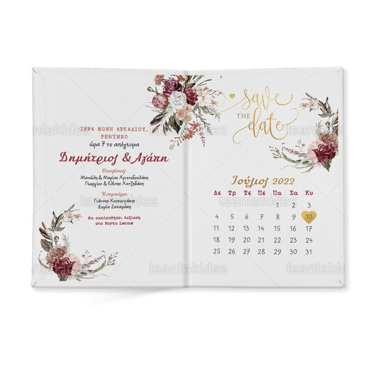 Προσκλητήριο σκληρό καπάκι  μεγάλο εκτυπωμένο με θέμα Calendar Invitation