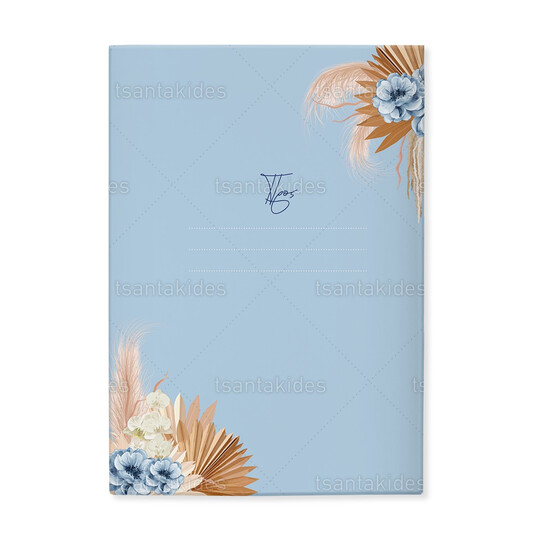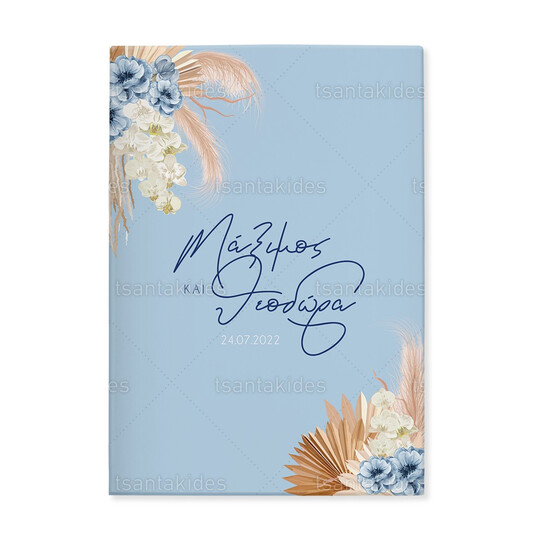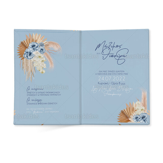 Προσκλητήριο σκληρό καπάκι μεγάλο εκτυπωμένο με θέμα Dusty Blue Pampas