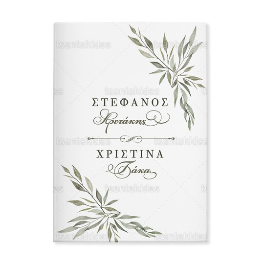Προσκλητήριο σκληρό καπάκι μεγάλο εκτυπωμένο με θέμα Olive Leaves