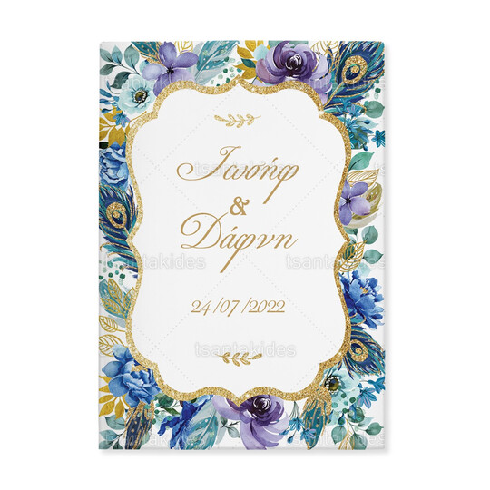 Προσκλητήριο σκληρό καπάκι  μεγάλο εκτυπωμένο με θέμα Peacock Wedding