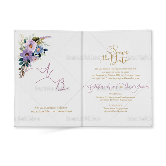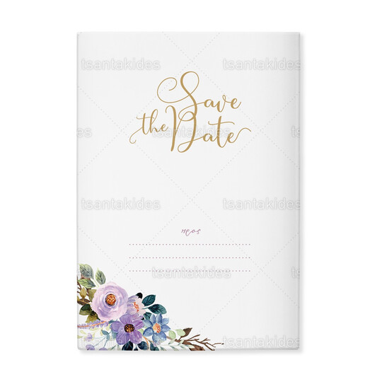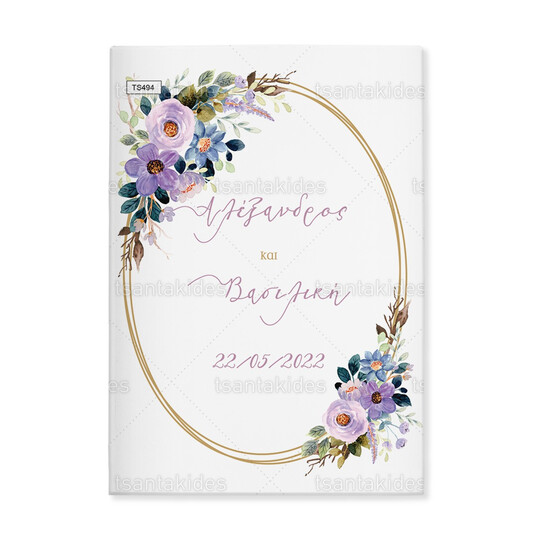 Προσκλητήριο σκληρό καπάκι μεγάλο εκτυπωμένο με θέμα Purple Gold Wreath
