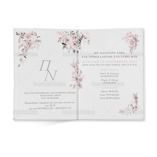 Προσκλητήριο σκληρό καπάκι μεγάλο εκτυπωμένο με θέμα Romantic Wild Roses