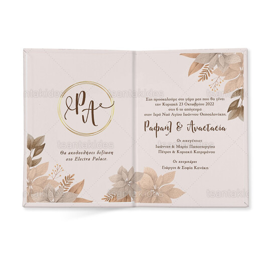 Προσκλητήριο σκληρό καπάκι μεγάλο εκτυπωμένο με θέμα Floral Wedding