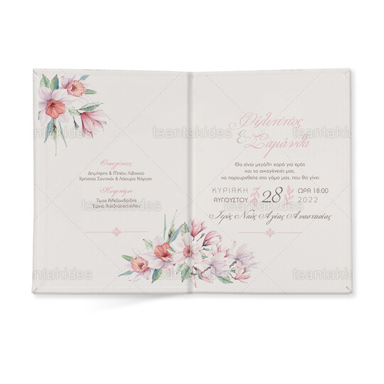 Προσκλητήριο σκληρό καπάκι μεγάλο εκτυπωμένο με θέμα Wild Magnolias