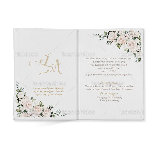 Προσκλητήριο σκληρό καπάκι μεγάλο εκτυπωμένο με θέμα White Roses