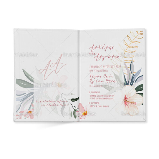 Προσκλητήριο σκληρό καπάκι μεγάλο εκτυπωμένο με θέμα Tropical Flowers