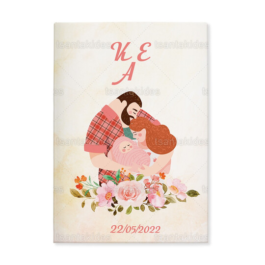 Προσκλητήριο σκληρό καπάκι  μεγάλο εκτυπωμένο με θέμα Couple and Daughter