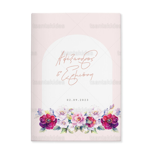 Προσκλητήριο σκληρό καπάκι μεγάλο εκτυπωμένο με floral διάκοσμο σε αψίδα