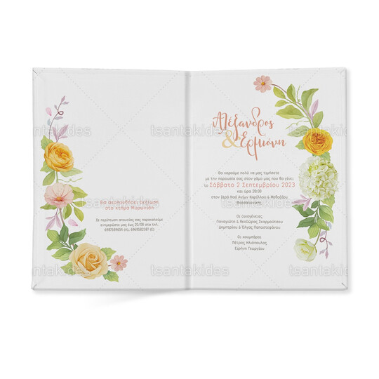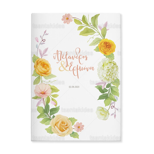 Προσκλητήριο σκληρό καπάκι  μεγάλο εκτυπωμένο με floral σχεδιασμό