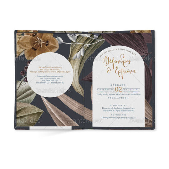 Προσκλητήριο σκληρό καπάκι μεγάλο εκτυπωμένο με bohemian ύφος και dried palm φύλλα