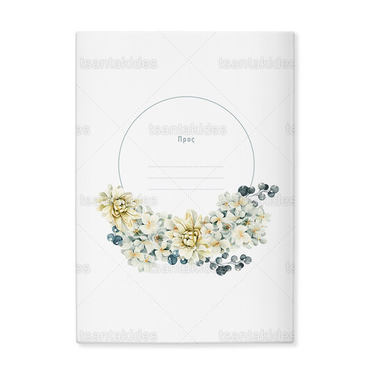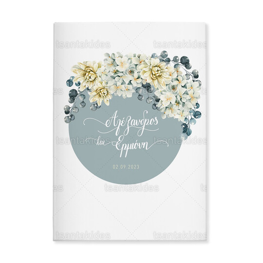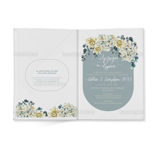 Προσκλητήριο σκληρό καπάκι μεγάλο εκτυπωμένο με dusty blue floral σχεδιασμό σε οβαλ