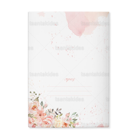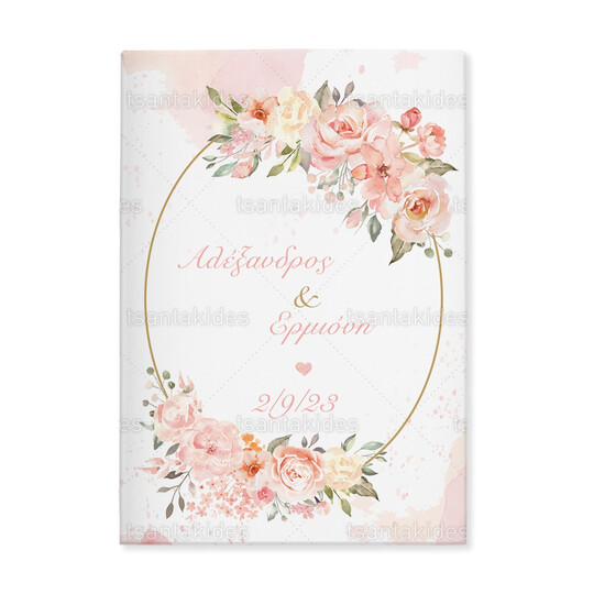 Προσκλητήριο σκληρό καπάκι μεγάλο εκτυπωμένο με floral peach αποχρώσεις και χρυσό οβάλ στεφάνι
