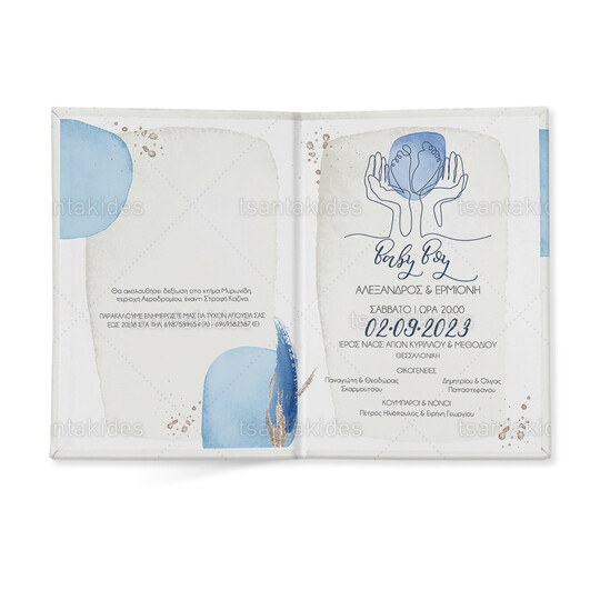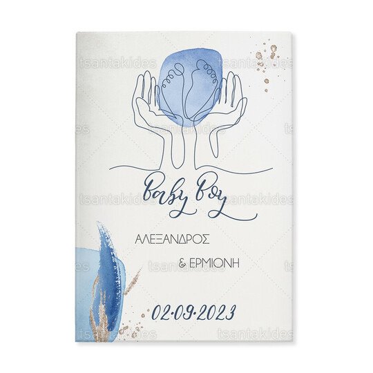 Προσκλητήριο σκληρό καπάκι μεγάλο εκτυπωμένο σε abstract ύφος με γραμμικά bebe ποδαράκια σε μπλε χρωματισμούς
