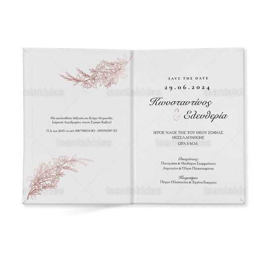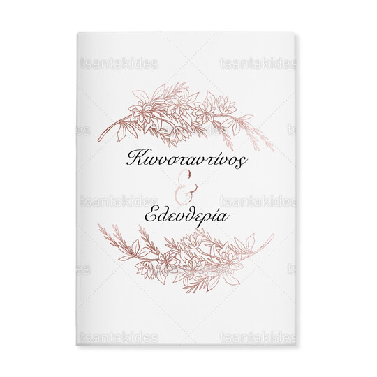 Προσκλητήριο σκληρό καπάκι μεγάλο εκτυπωμένο με θέμα Rose gold branch