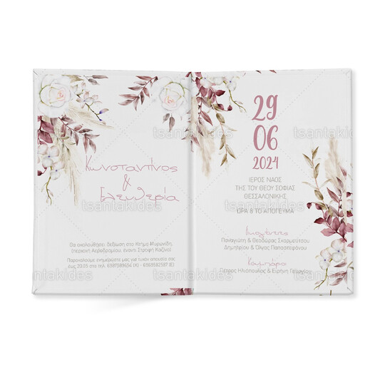 Προσκλητήριο σκληρό καπάκι μεγάλο εκτυπωμένο με θέμα Dusty pink boho pampas