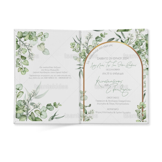 Προσκλητήριο σκληρό καπάκι μεγάλο εκτυπωμένο με θέμα Greenery arch