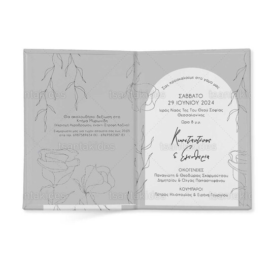 Προσκλητήριο σκληρό καπάκι μεγάλο εκτυπωμένο με θέμα Minimal grey silver flowers