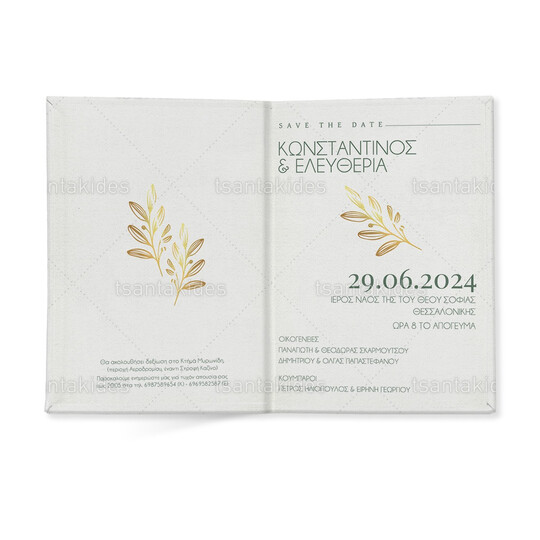 Προσκλητήριο σκληρό καπάκι μεγάλο εκτυπωμένο με θέμα Gold branch