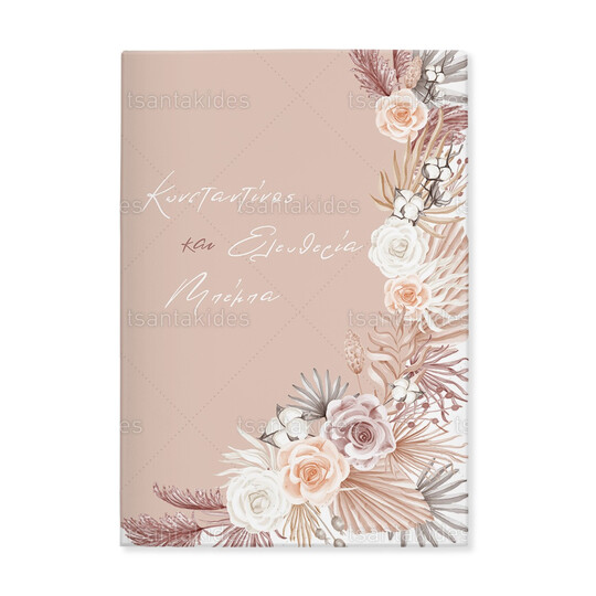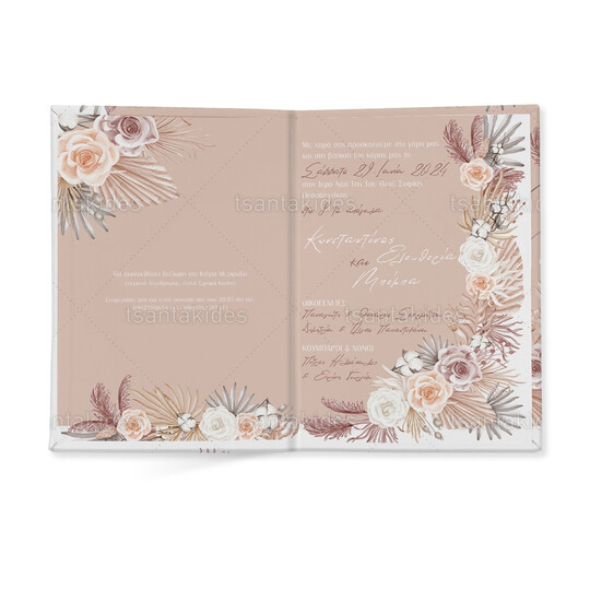 Προσκλητήριο σκληρό καπάκι μεγάλο εκτυπωμένο με θέμα Boho rose pampas