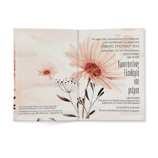 Προσκλητήριο σκληρό καπάκι μεγάλο εκτυπωμένο με θέμα Pastel floral