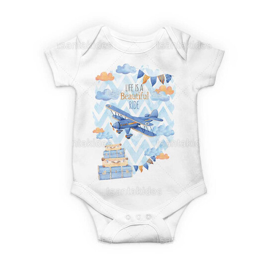Βρεφικό φορμάκι για αγόρι εκτυπωμένο με θέμα travel και αεροπλανάκι