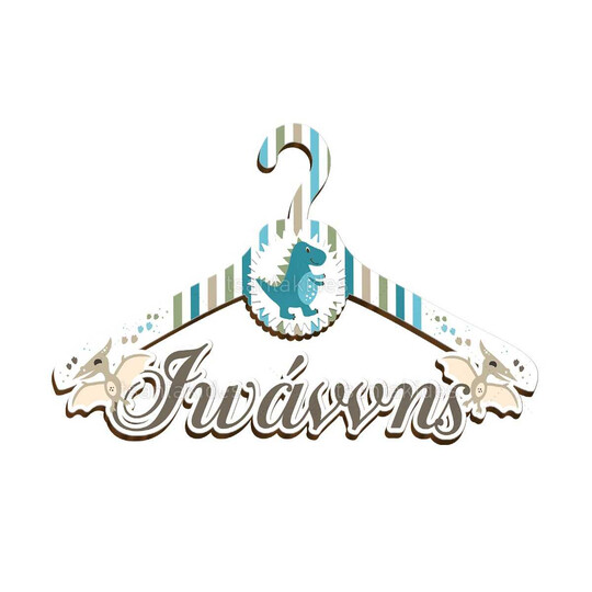 Ξύλινη παιδική κρεμάστρα εκτυπωμένη με θέμα τα δεινοσαυράκια