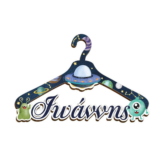Ξύλινη παιδική κρεμάστρα εκτυπωμένη με θέμα Out of space