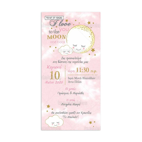 Προσκλητήριο βάπτισης παπυράκι εκτυπωμένο με θέμα το φεγγαράκι