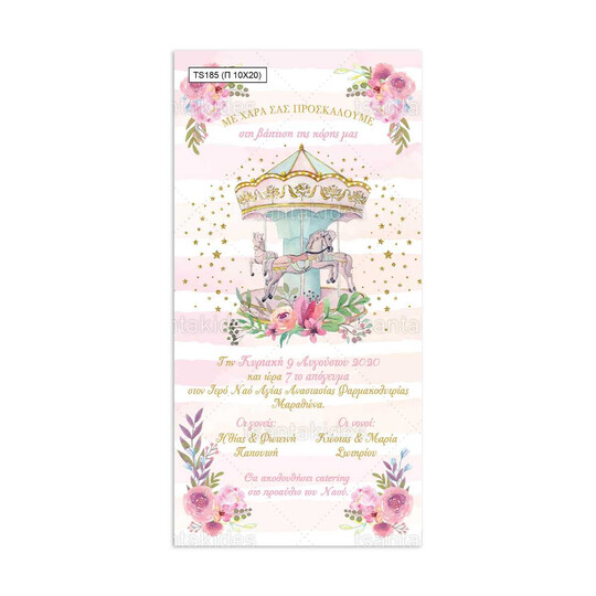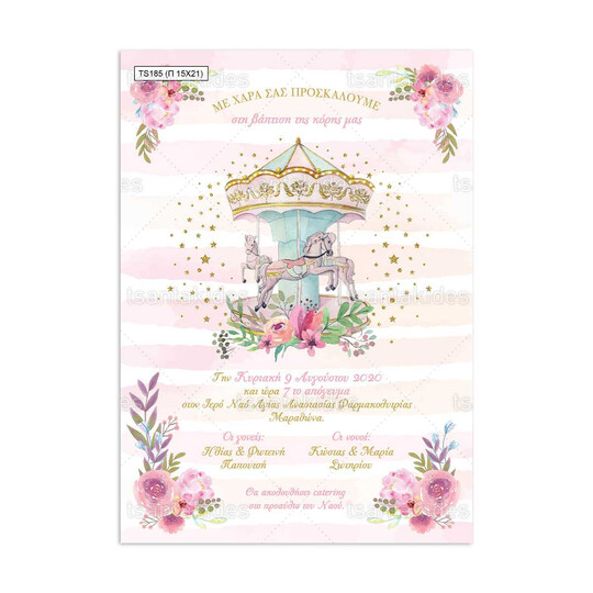 Προσκλητήριο βάπτισης παπυράκι εκτυπωμένο με θέμα carousel