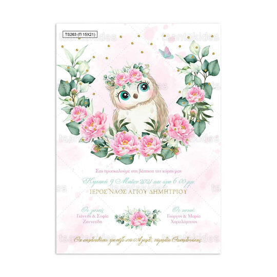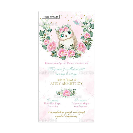 Προσκλητήριο βάπτισης παπυράκι εκτυπωμένο με θέμα την μικρή κουκουβάγια