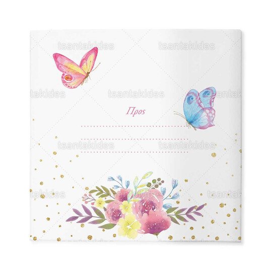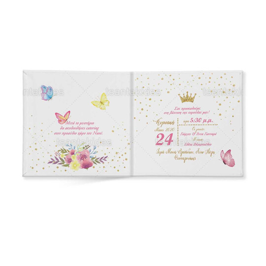 Προσκλητήριο σκληρό καπάκι, παραμυθάκι μικρό, εκτυπωμένο με θέμα την πεταλούδα