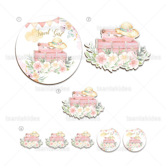 Ξύλινο σετ διακόσμησης εκτυπωμένο με θέμα travel girl