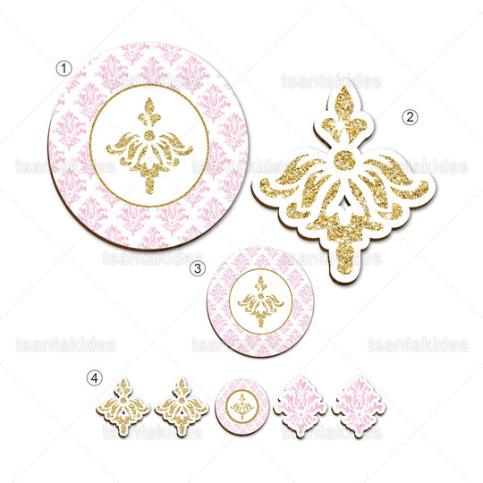 Ξύλινο σετ διακόσμησης εκτυπωμένο με θέμα Damask pink