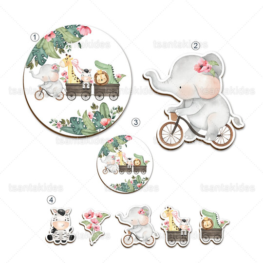 Ξύλινο σετ διακόσμησης εκτυπωμένο με θέμα Pink safari