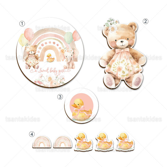 Ξύλινο σετ διακόσμησης εκτυπωμένο με θέμα Sweet rainbow