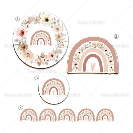Ξύλινο σετ διακόσμησης εκτυπωμένο με θέμα Floral rainbow